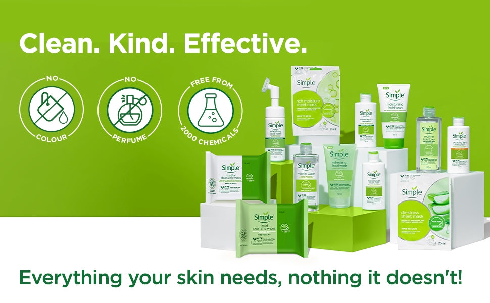 Meet Simple Kind To Skin Micellar Makeup Cleansing Water – our most advanced and gentle makeup remover yet. Infused with clever cleansing bubbles known as Micelles, this innovative formula attracts and lifts away dirt, makeup, and impurities like a magnet, without disturbing your skin’s natural barriers.